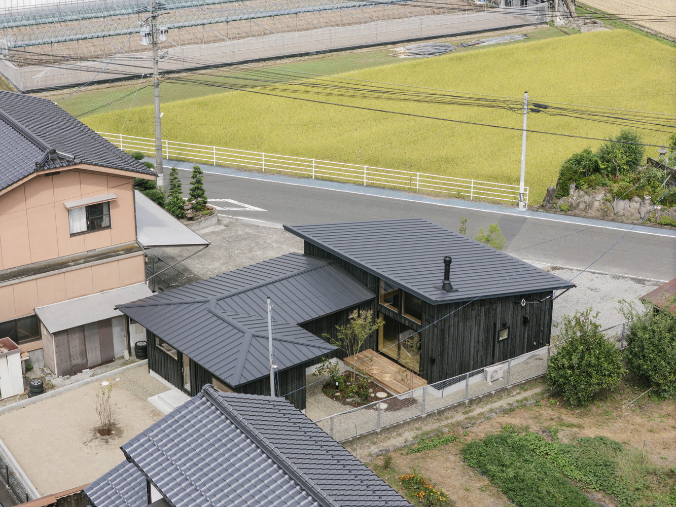 建物から3メートルはねだした造作ガレージがあり、家全体に1.1メートルの軒を全面に出しているので、雨の日でも全ての窓をあけて換気する事ができます。